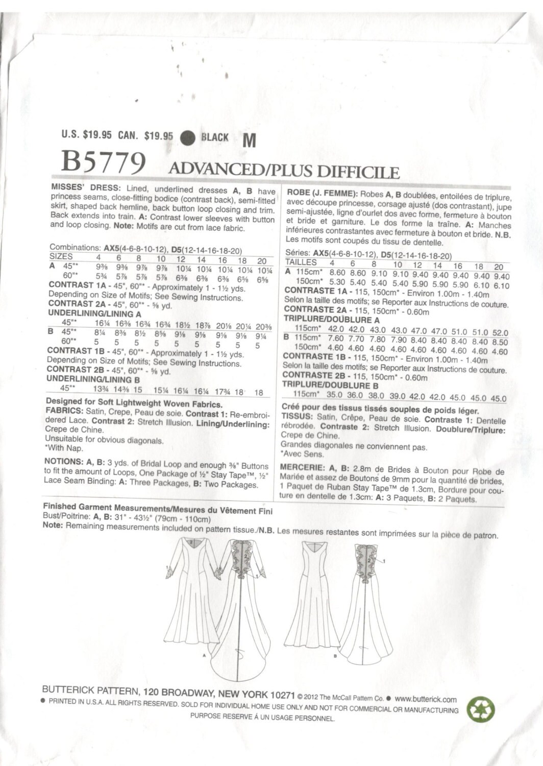 Butterick 5779 Size 4 6 8 10 12 Women S Long Bridal Etsy