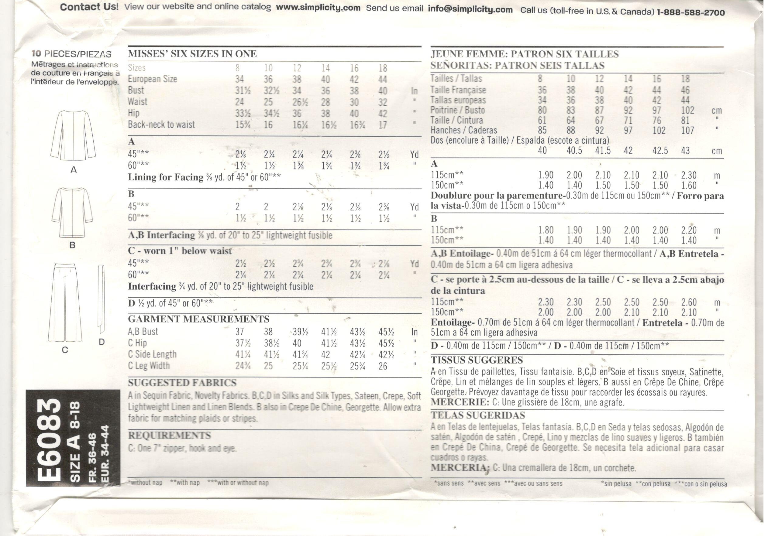 Butterick Sewing Pattern 3039 Shirt Tunic Dress Skirt Pants Easy Uc 16w 18w 20w 31664331391 Ebay